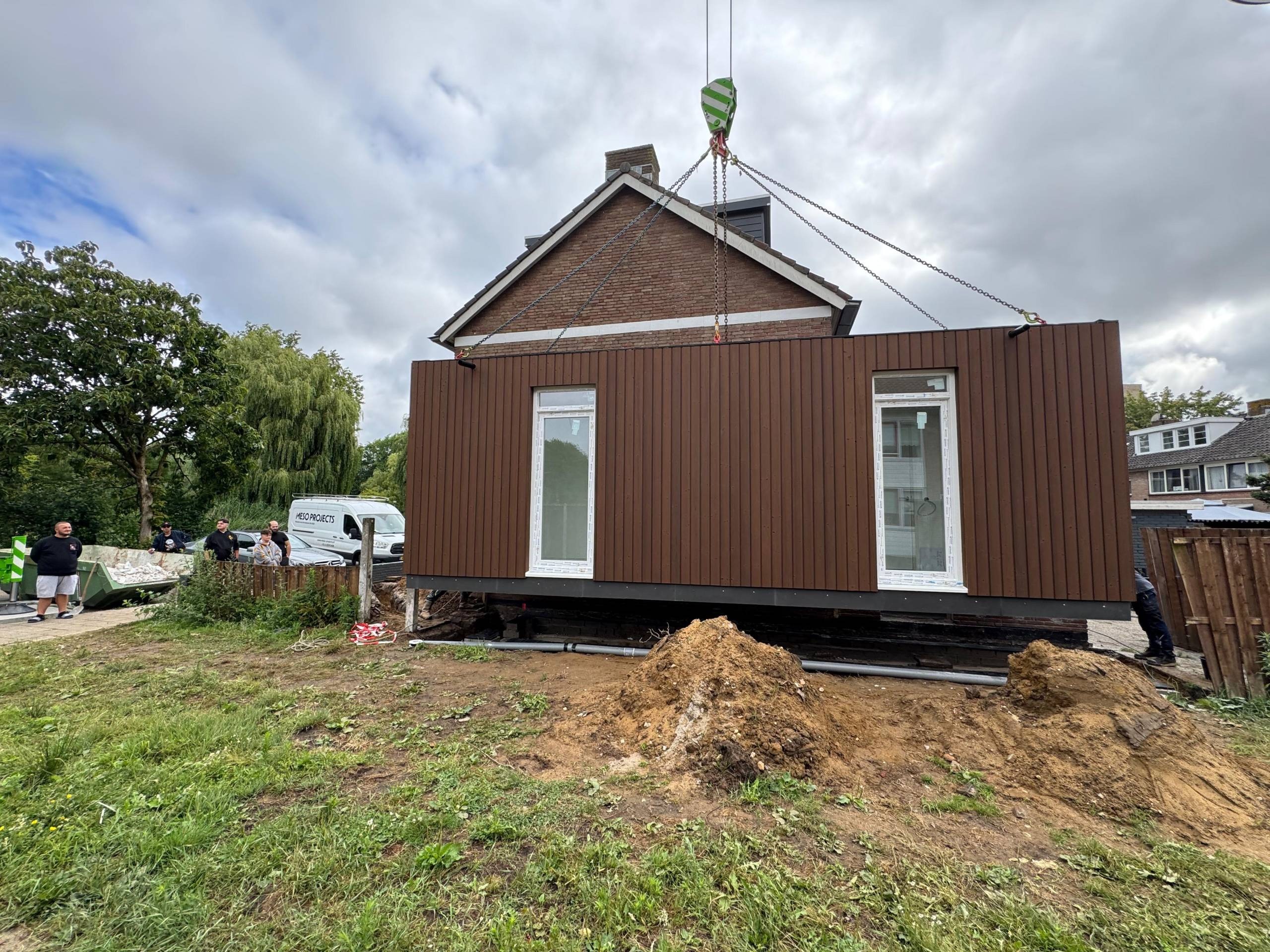 In het kort betekent modulair bouwen dat we de woning grotendeels in een gecontroleerde fabrieksomgeving bouwen. Daar worden vloeren, wanden en het dak volledig voorbereid. Vervolgens wordt de woning als één geheel naar de locatie vervoerd, net als een perceel met eigen grond. Ter plaatse worden elektriciteit, water en andere installaties aangesloten zodat de woning snel bewoonbaar is.