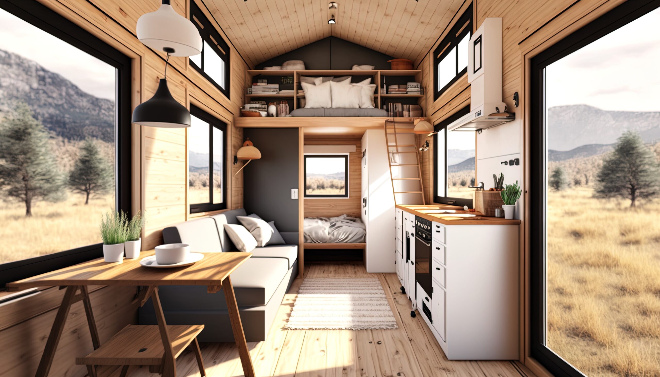 Je kunt kiezen uit verschillende bouwstijlen — modern, landelijk, minimalistisch of natuur-inclusief — en daarnaast bepalen hoe de binnenruimte wordt ingedeeld. Denk aan een verhoogd slaapgedeelte, slimme opbergkasten, grote raampartijen voor veel licht, of een compacte maar luxe keuken.